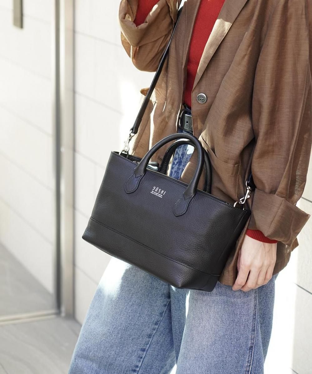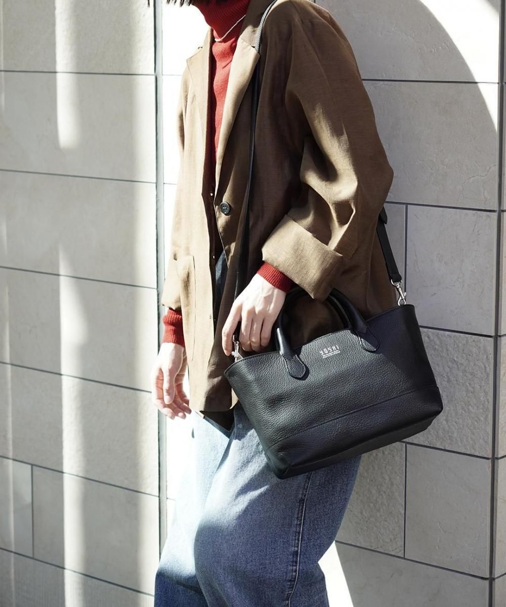 一見素朴で自然な表情をもつシボ革(シュリンク革)を使用した、2WAYハンドバッグ。 やわらかな革の質感と、ほどよいツヤ感が魅力で、カジュアルにもエレガントにも合わせやすいデザインです。